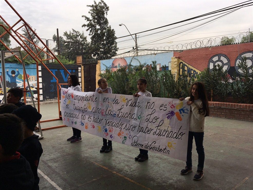 Los Cuartos Básicos de nuestro colegio, dirigidos por sus profesoras jefas Francisca Barriga y Claudia Aguilera, realizaron un significativo acto inspirados en las palabras de Pierre de Coubertin «Lo importante en la vida no es el triunfo sino la lucha. Lo principal no es haber vencido, sino haber luchado»
