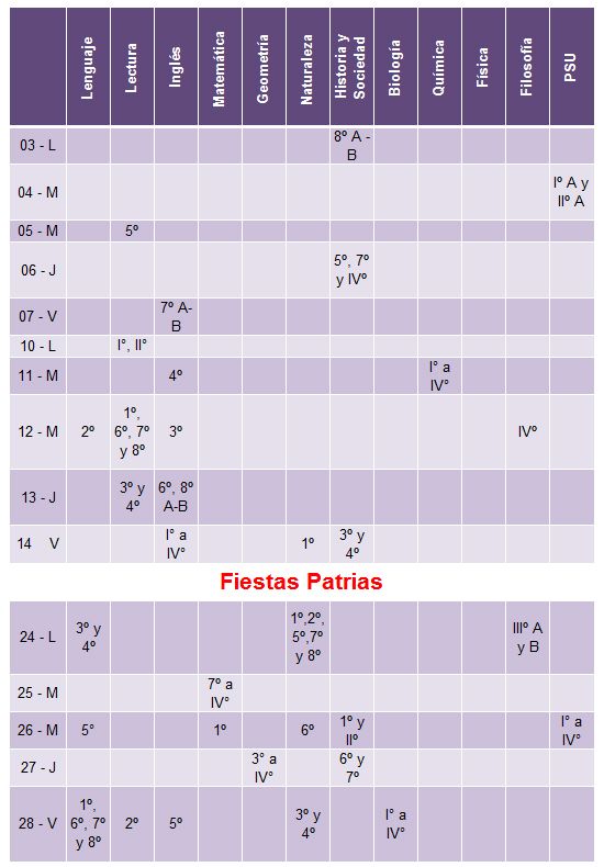 Compartimos con nuestra comunidad, el Calendario de Pruebas correspondiente al mes de Septiembre de 2012.