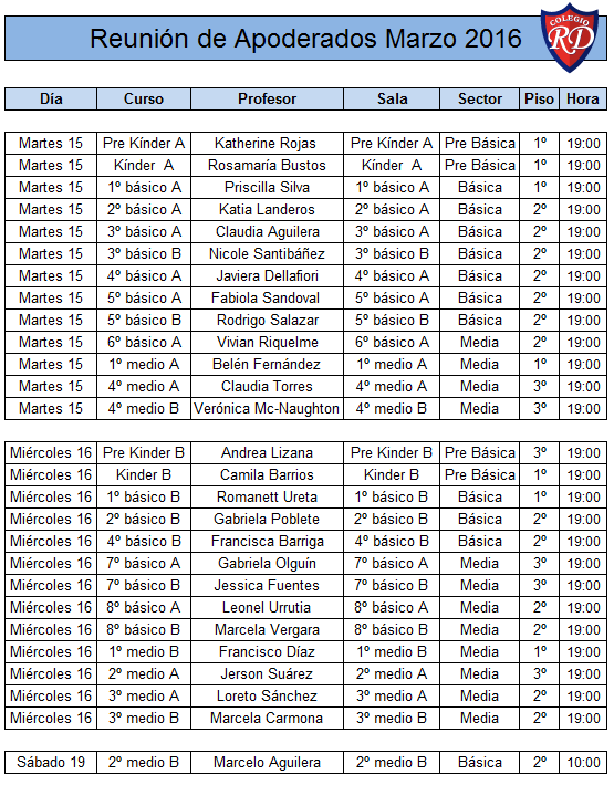 Calendario de la Primera Reunión de Padres y Apoderados 2016 10/03/2016 240 Vistas Compartir Facebook Twitter