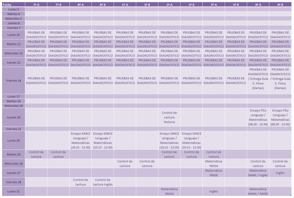 Calendario de Pruebas Alumnos 7º Básico a 4º Medio 11/03/2014 266 Vistas Haz clic en la imagen para agrandar Compartir Facebook Twitter