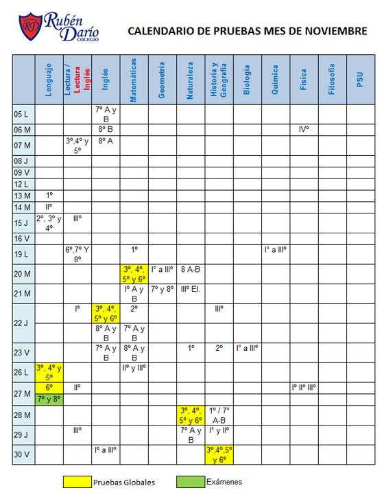 Informamos a nuestra comunidad que ya se encuentra disponible para descargar, el Calendario de pruebas correspondiente al mes de Noviembre.
