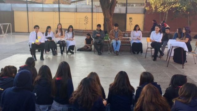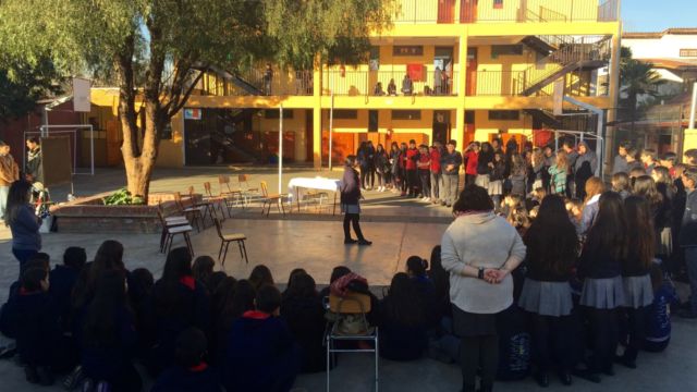 Nuestros estudiantes de cuarto medio del electivo humanista de lenguaje, dirigido por la profesora Loreto Sánchez, representaron en los patios del colegio a los personajes de la obra «Cien años de Soledad» de Gabriel García Márquez. Sus declamaciones nos permitieron rememorar la historia plasmada en este obra literaria, lectura obligada para cada uno de nosotros». Felicitaciones!