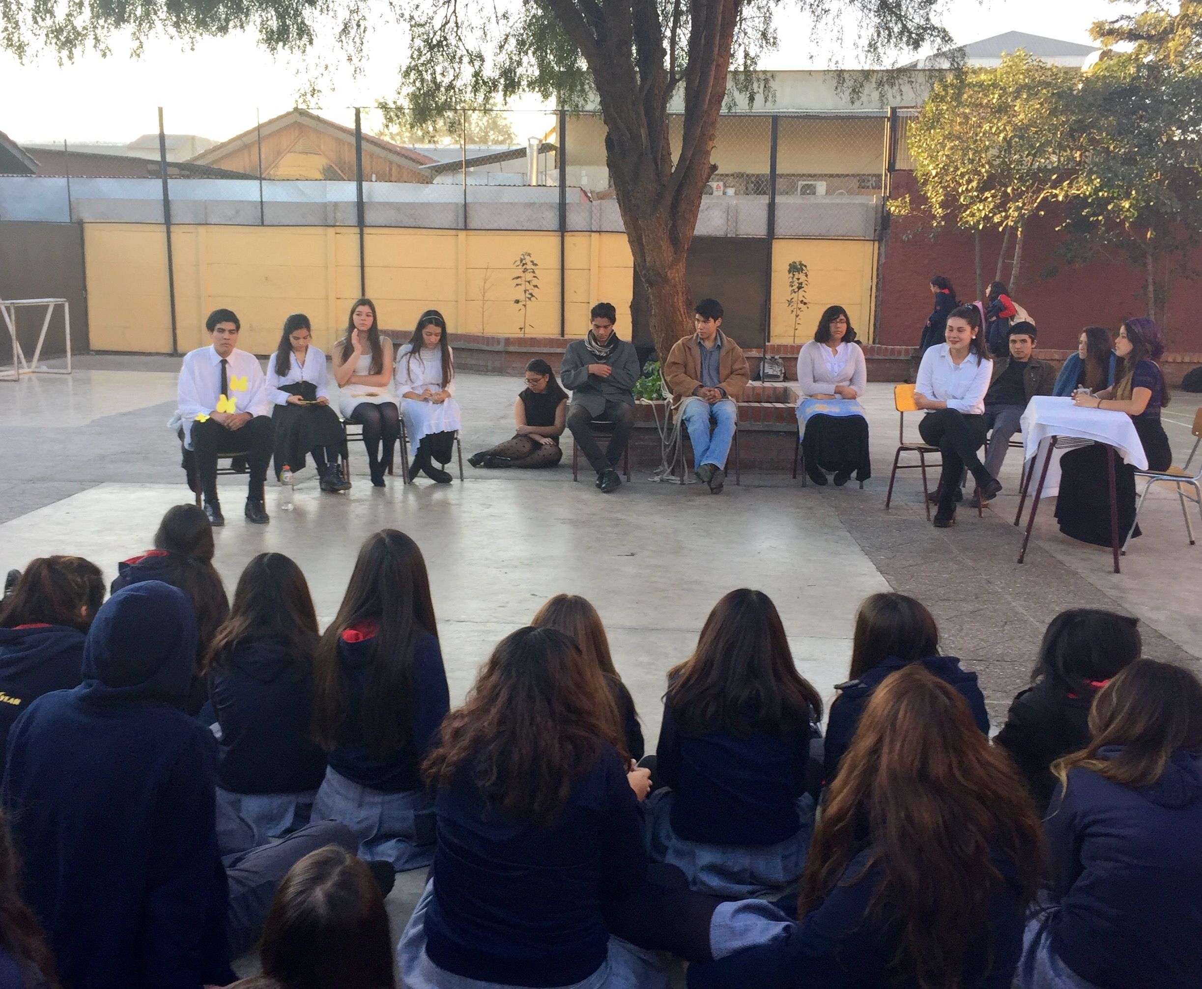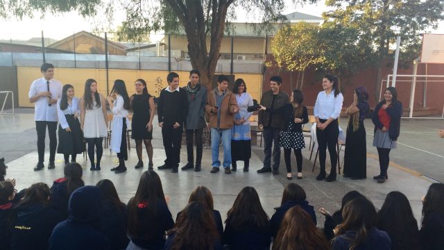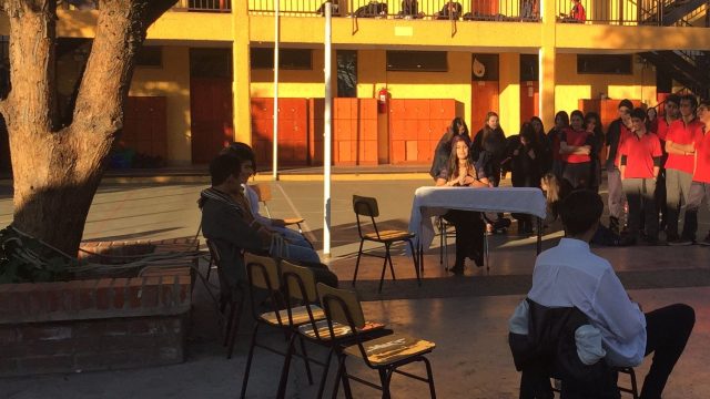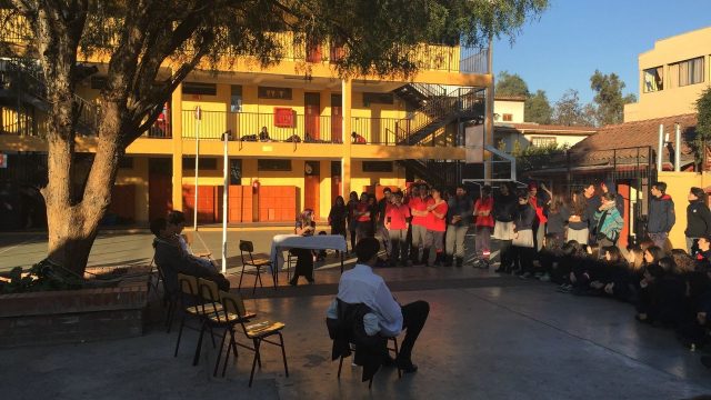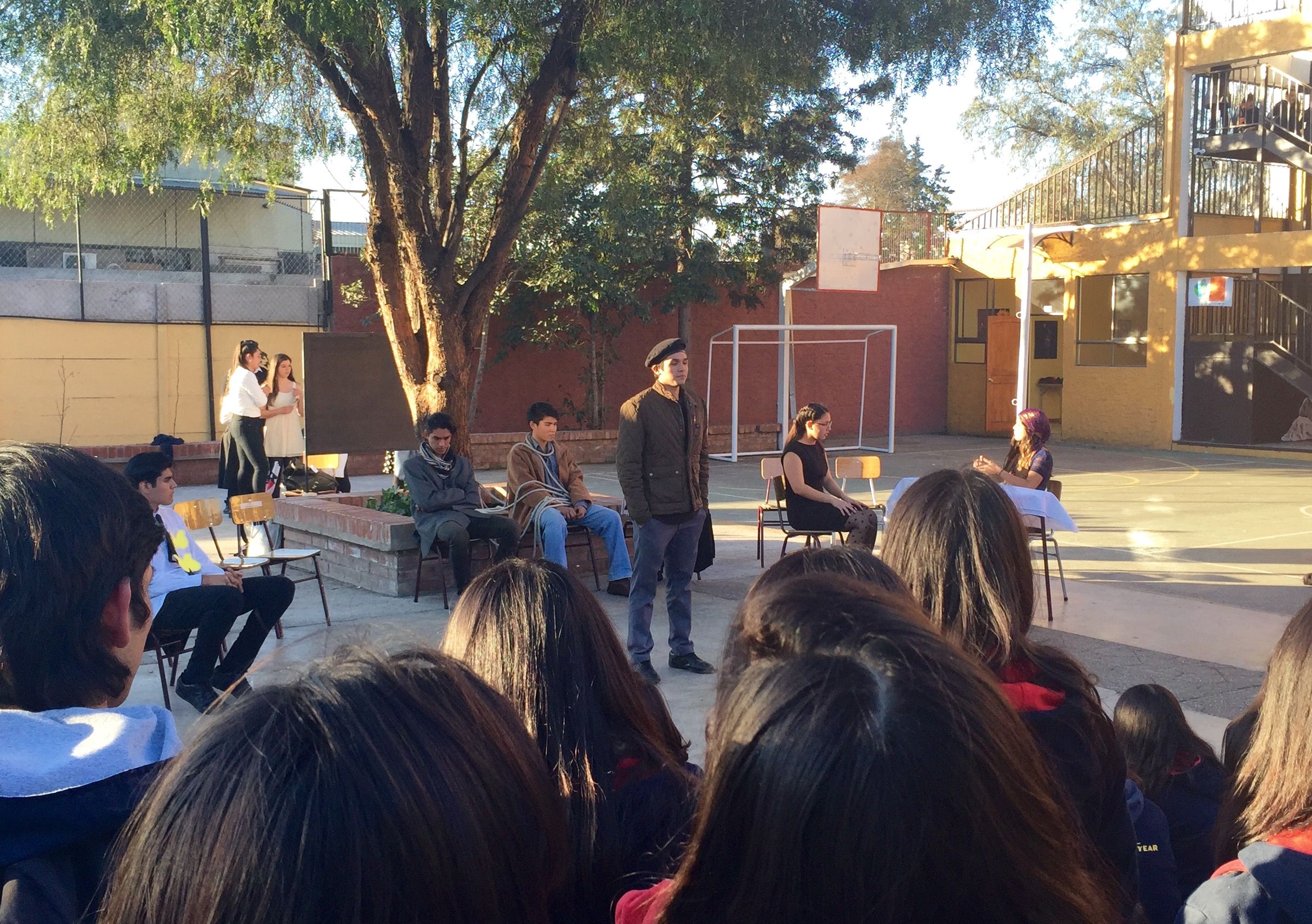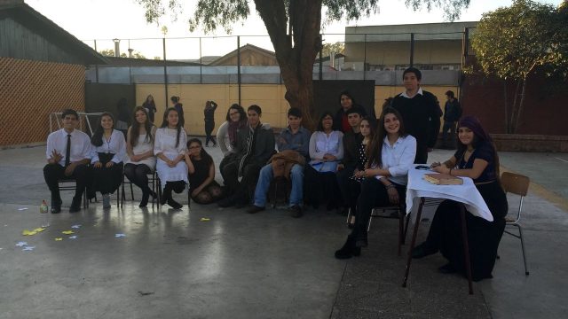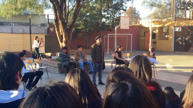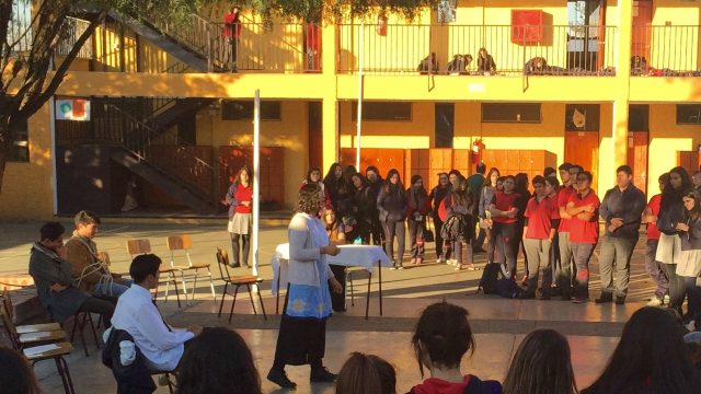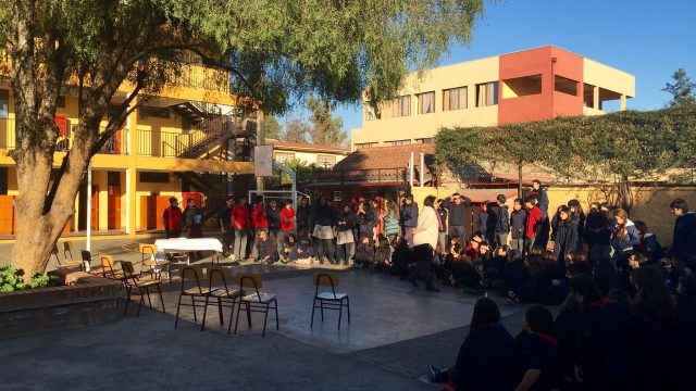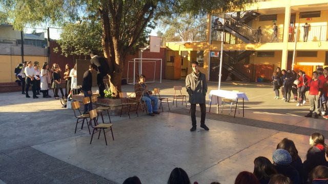 Nuestros estudiantes de cuarto medio del electivo humanista de lenguaje, dirigido por la profesora Loreto Sánchez, representaron en los patios del colegio a los personajes de la obra «Cien años de Soledad» de Gabriel García Márquez. Sus declamaciones nos permitieron rememorar la historia plasmada en este obra literaria, lectura obligada para cada uno de nosotros». Felicitaciones!