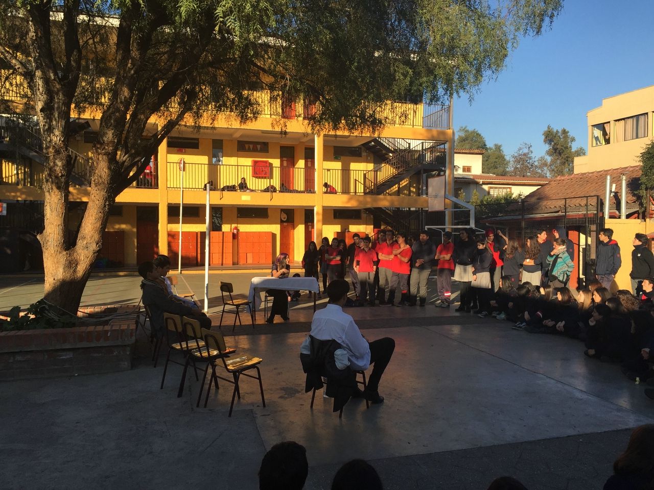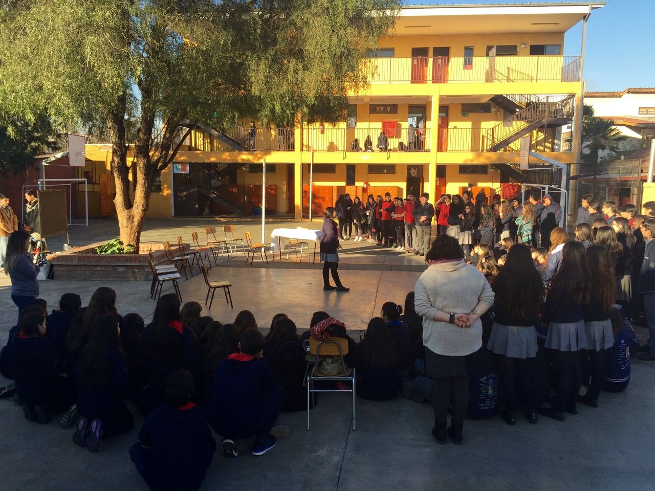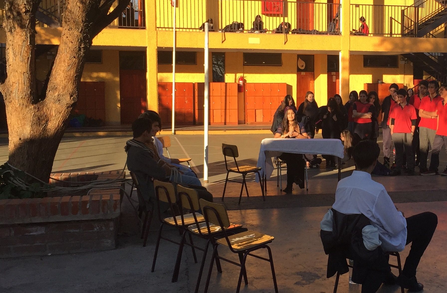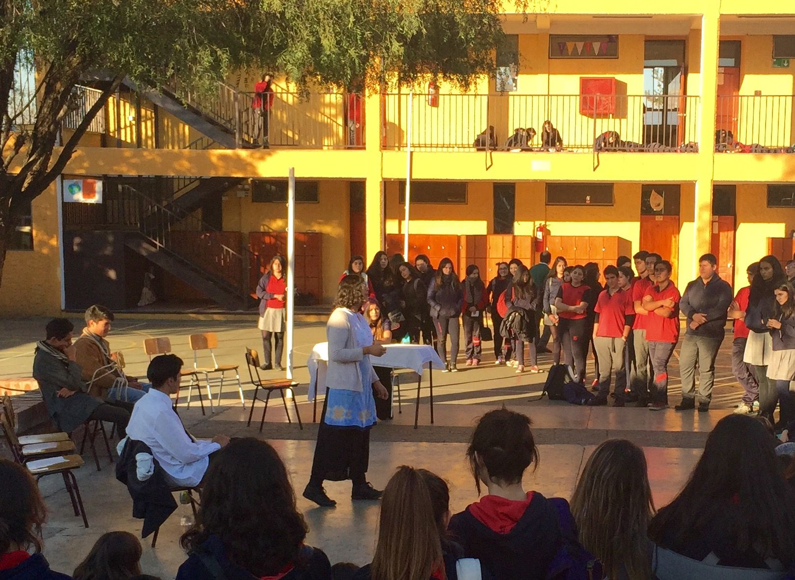 Nuestros estudiantes de cuarto medio del electivo humanista de lenguaje, dirigido por la profesora Loreto Sánchez, representaron en los patios del colegio a los personajes de la obra «Cien años de Soledad» de Gabriel García Márquez. Sus declamaciones nos permitieron rememorar la historia plasmada en este obra literaria, lectura obligada para cada uno de nosotros». Felicitaciones!