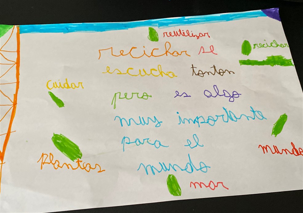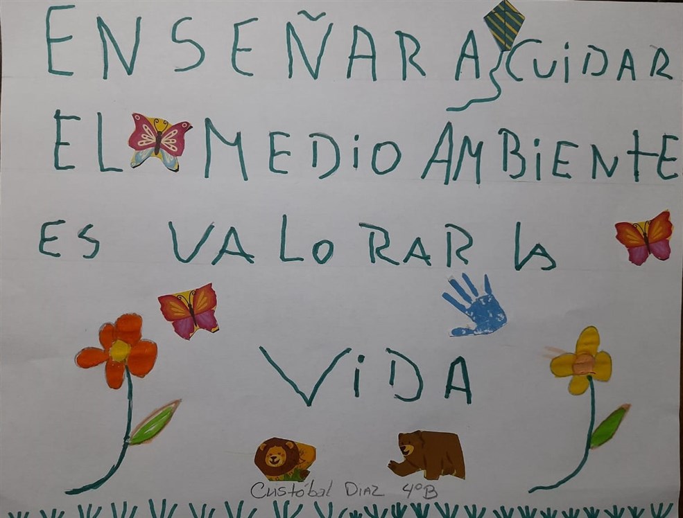 A continuación, mostramos la evidencia trabajada por el curso 4° Básico B, a cargo de la profesora Génesis Ordóñez. La actividad consistió en ver material audiovisual sobre el plástico y nuestro ambiente, y escribir en un papel una frase o palabra sobre cuál es el compromiso que tienen los y las estudiantes con el medio ambiente.