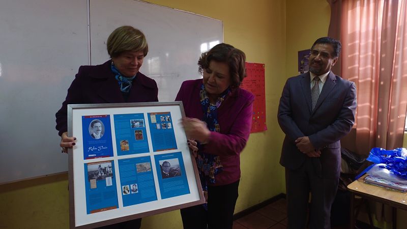 El día jueves 23 de junio recibimos una importante y significativa visita en nuestro colegio; la Embajadora de la República de Nicaragua, señora María Luisa Robleto Aguilar, junto a los bisnietos del poeta Rubén Darío, señora Martha Eloísa Darío Lacayo y el señor Martín Rubén Katz Darío, nos permitieron compartir con tan importantes personas, a quienes agradecemos su calidez y gentileza.