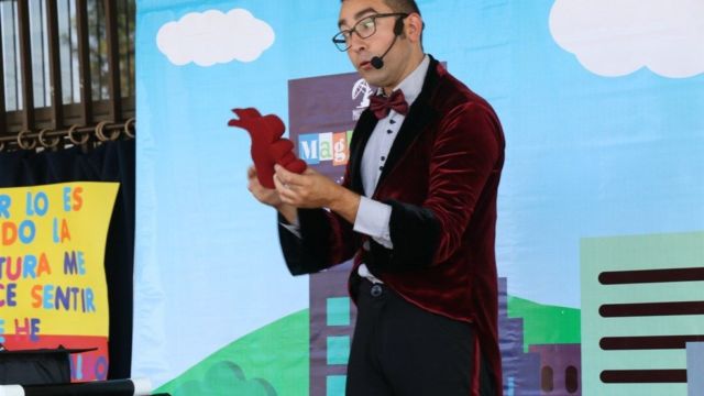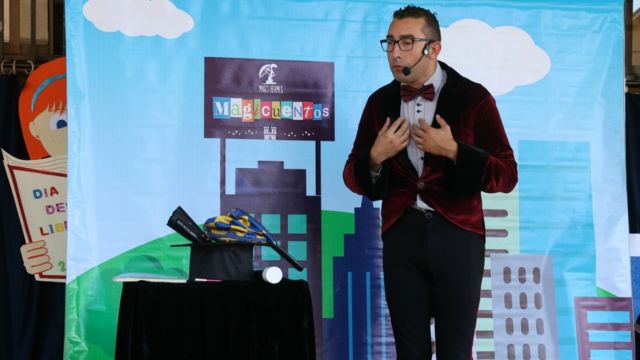 El Día del Libro fue conmemorado el viernes 20 por todos los estudiantes de nuestro colegio en una jornada muy bien organizada por el Departamento de Lenguaje; centrada en obras de autores nacionales, disfrutamos de obras de teatro en vivo, videos, exposiciones, stands literarios y de un excelente número artístico ofrecido por el colegio a todos los estudiantes de enseñanza básica, un Cuenta Cuentos profesional relató una interesante historia a través de la magia, el talento y la Fantasía.