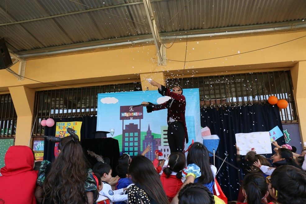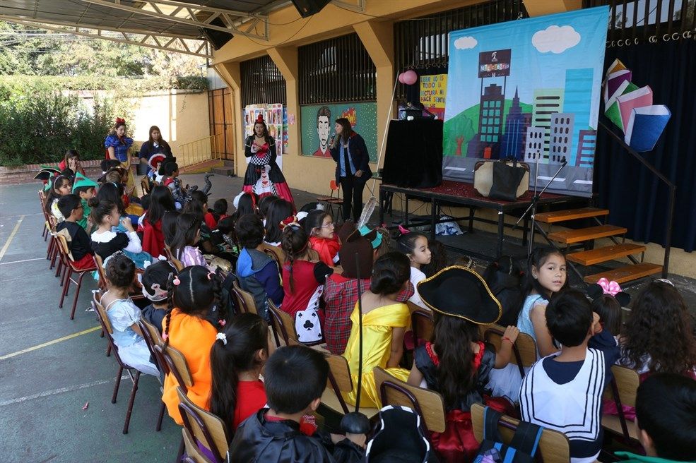 El Día del Libro fue conmemorado el viernes 20 por todos los estudiantes de nuestro colegio en una jornada muy bien organizada por el Departamento de Lenguaje; centrada en obras de autores nacionales, disfrutamos de obras de teatro en vivo, videos, exposiciones, stands literarios y de un excelente número artístico ofrecido por el colegio a todos los estudiantes de enseñanza básica, un Cuenta Cuentos profesional relató una interesante historia a través de la magia, el talento y la Fantasía.