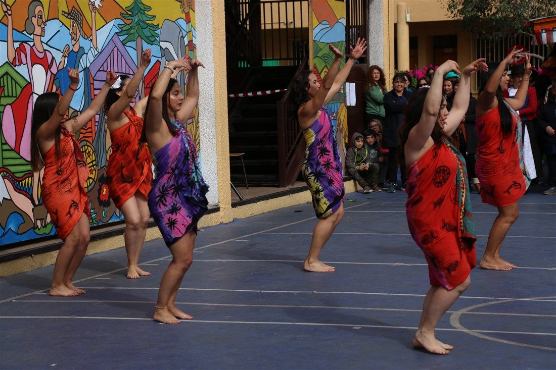 Agradecemos el esmerado trabajo realizado por los docentes del colegio; Marcela Carmona, Francisca Barriga y Jerson Suárez: quienes desde la asignatura de Educación Física prepararon hermosos cuadros coreográficos.